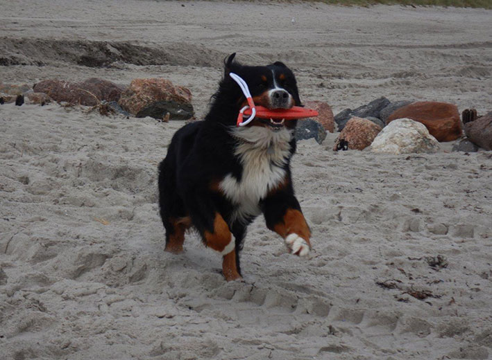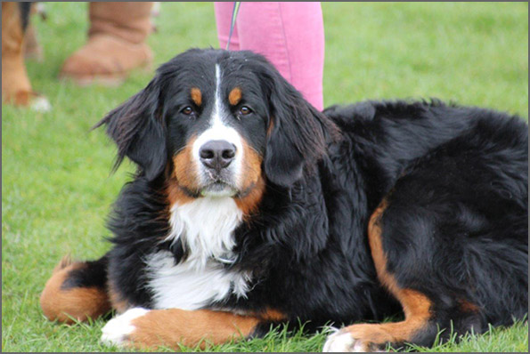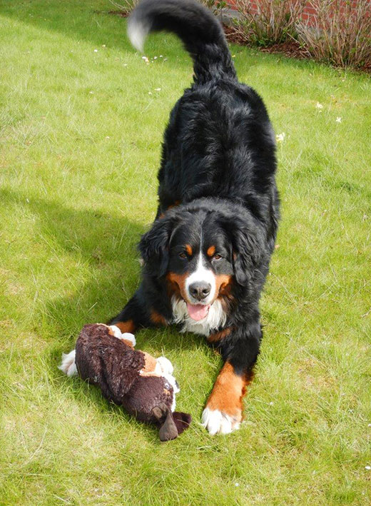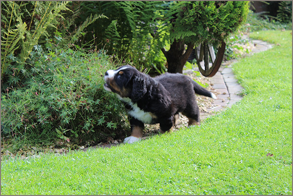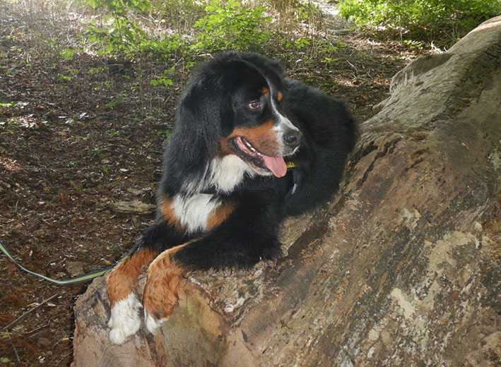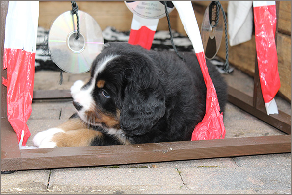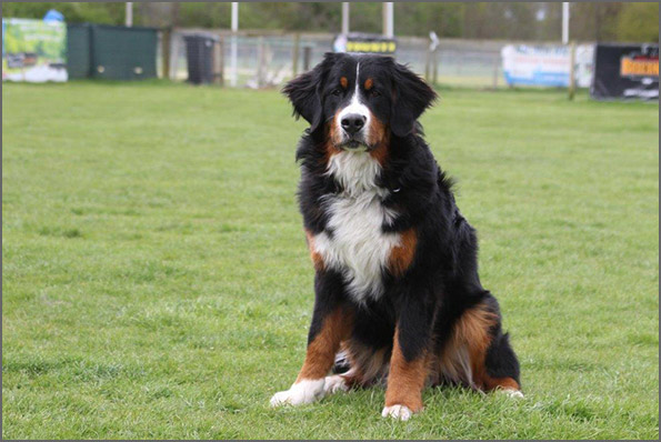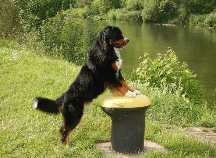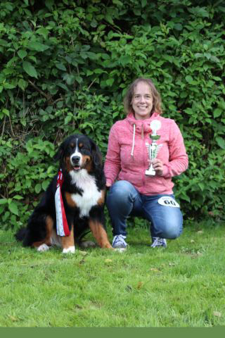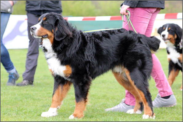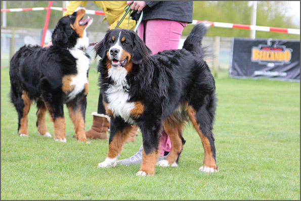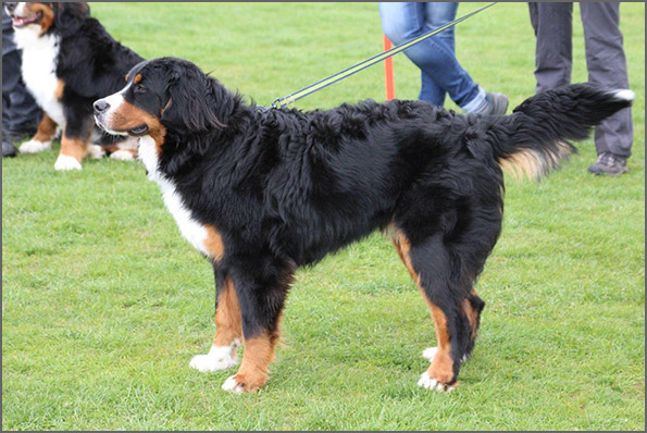 | Knapp 2jähriger, typvoller Rüde mit leicht gewellter, gepflegter Behaarung und dunklem Brand. Kräftiger Kopf, dunkelbraune Augen, leicht offene Lefzen, korrekte Ohrenhaltung, sehr kräftige Laufknochen, im Stand minimal ausdrehend gestellt. Ausreichende Winkelungen, Rücken minimal ansteigend, Rute korrekt getragen. flüssiges, freies, nocht etwas verspieltes Gangwerk, absolut freundliches Verhalten. |