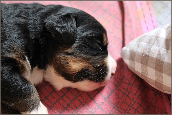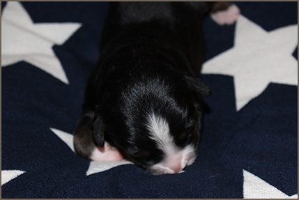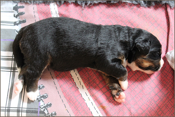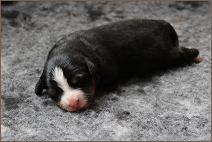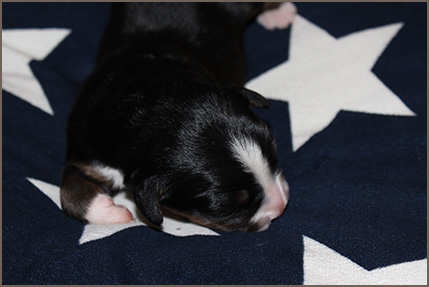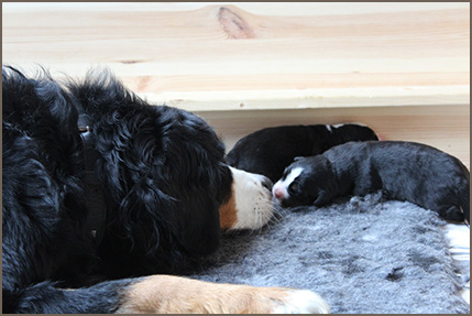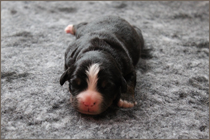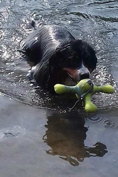 | Mittelgroßer, kompakter, knochenstarker Rüde, wenig gewelltes Haar, sehr dunkler Brand. Ausgeprägte Vorder- und Hinterhandwinkelungen. Sehr gut angelegter Brustbereich, korrekte obere und untere Linie. Gleichmäßige Bewegungsabläufe mit sehr gutem Raumgriff. Freundliches Verhalten. |
