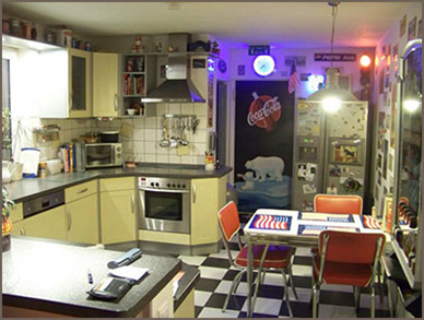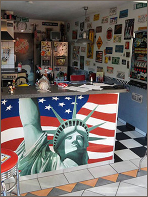 sind mit vielen amerikanischen Elementen dekoriert und bebaut.